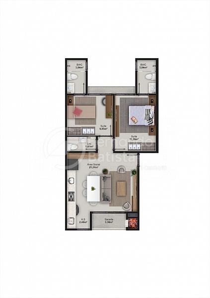 2 dormitórios (2 suítes)